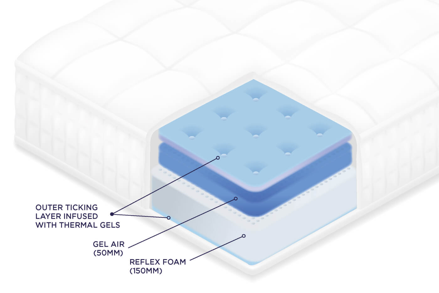 The softest of our mattresses, Eros GelAir® is pocket sprung and constructed from 150mm of reflex foam topped with 50mm of Gel Air – offering all the comfort of a memory foam mattress with a few added bonuses.