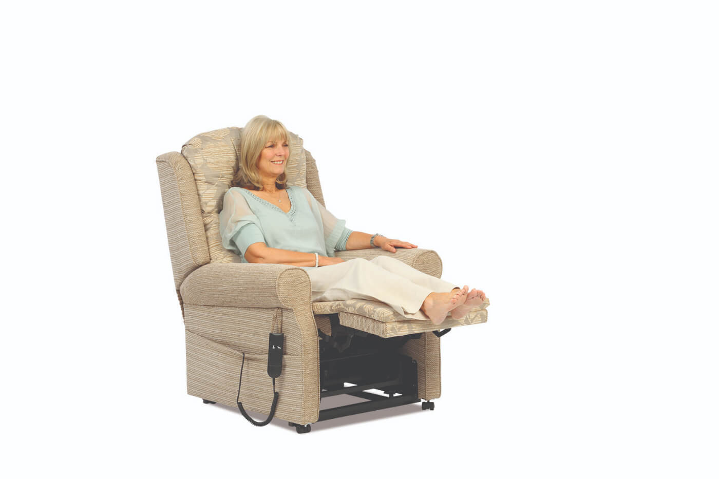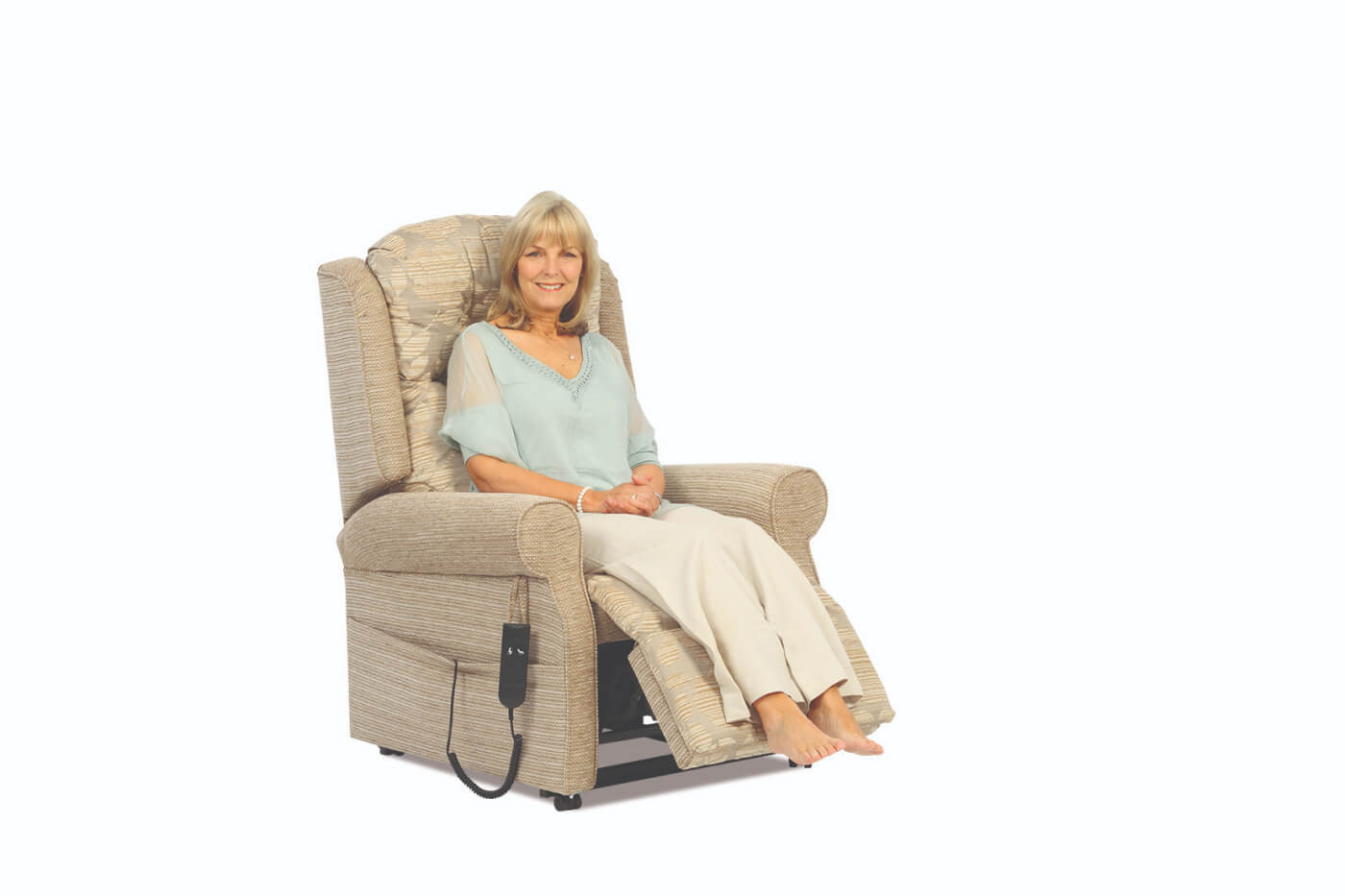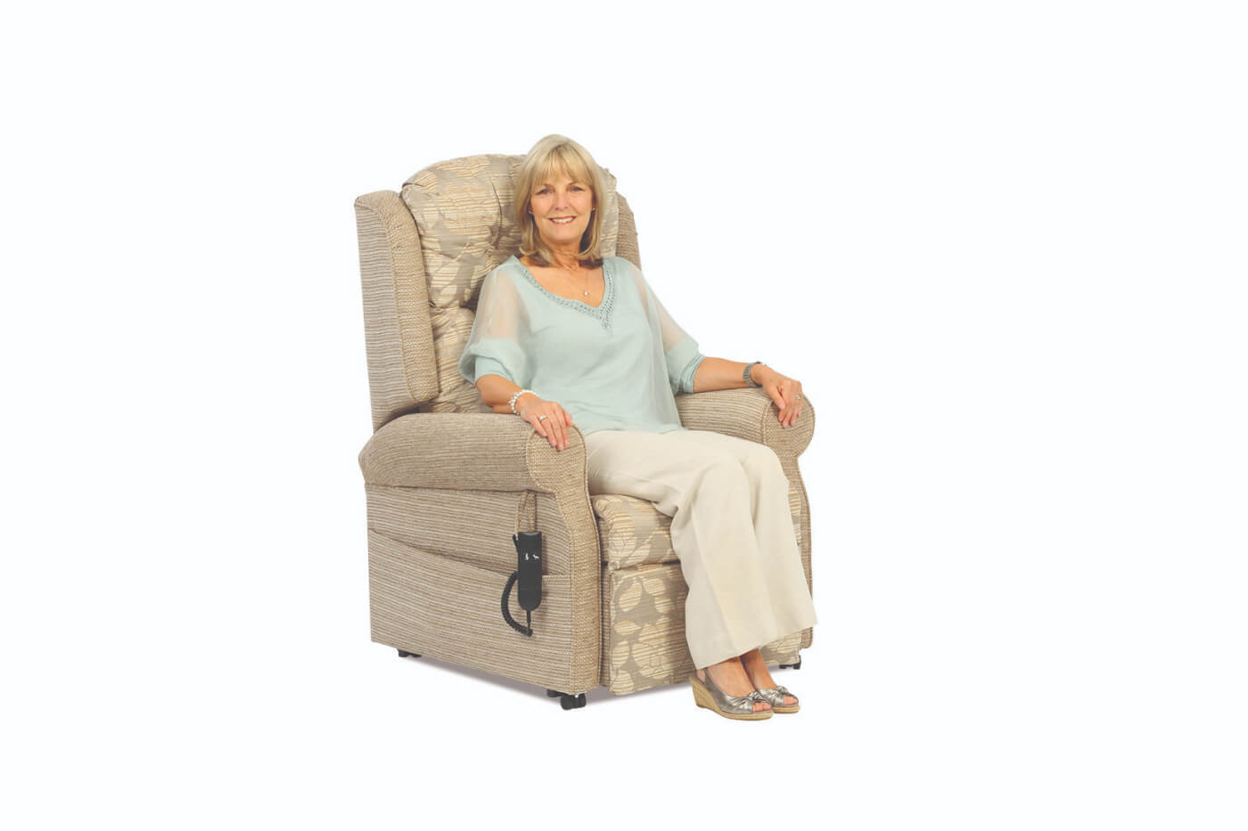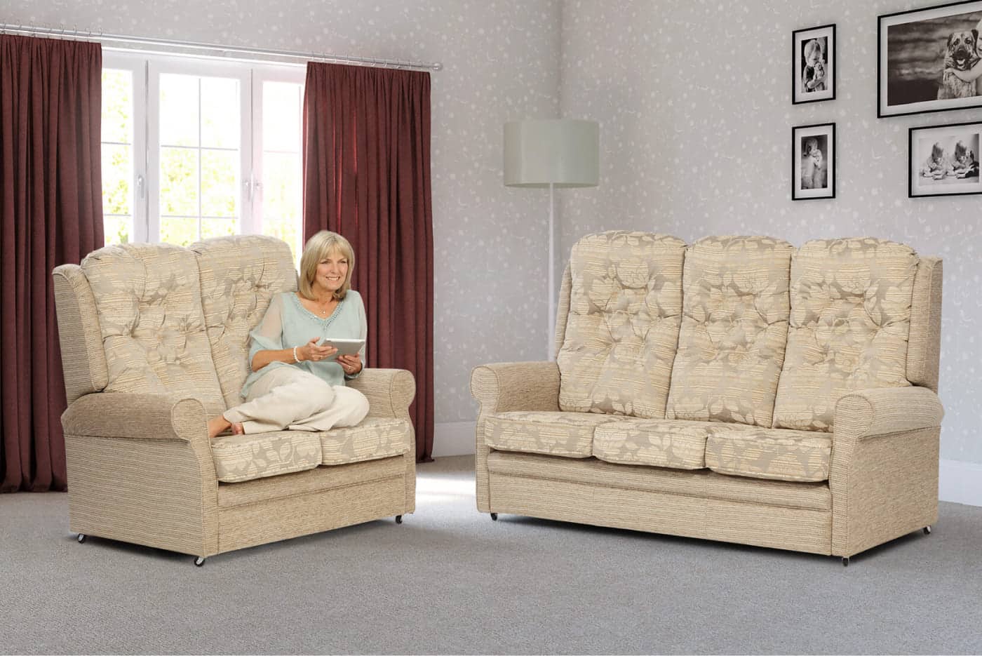 The design of the wings of the Norfolk riser recliner chair and adjustable sofa adds to the simplicity of this collection. A piped, scroll-shaped arm exaggerates the elegant and modest design. Pictured with our button back, this is an extremely comfortable suite.