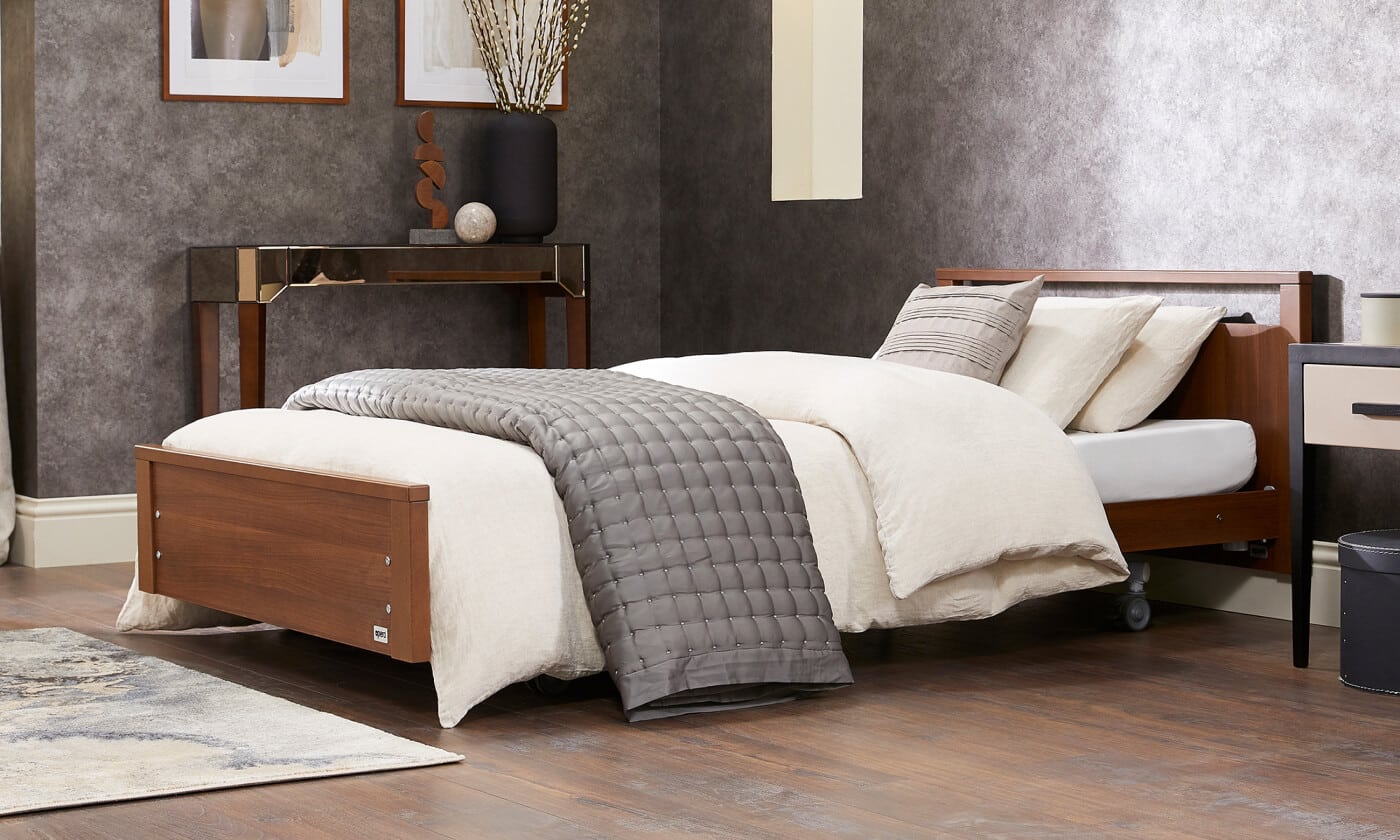 The Dartmouth single action bed is a multi-position homecare bed that is styled to look contemporary. In its lowest position you cannot tell this electric bed has any lift functions.